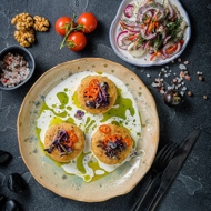 Garnish to your taste. In the photo, there are 33% cream and green dill oil on the plate.