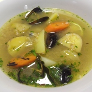 Place pike perch fillet and mussels in parsley sauce in serving bowls, add lime wedges, and pour over the finished soup.