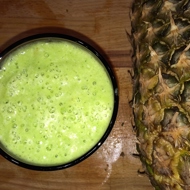 Blend the pineapple, mint leaves, and the juice from the oranges and lime on high speed for about 5 minutes until completely smooth.