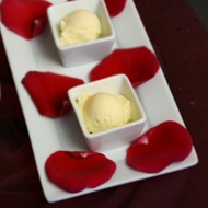 Following your machine's instructions, churn the ice cream and then place it in the freezer. Serve garnished with fresh rose petals.