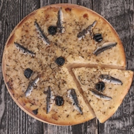 Top with the onion. Then distribute the anchovies and olives. Bake until golden brown, about 15 minutes.