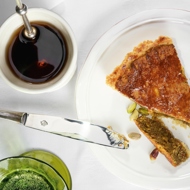 Crush the cardamom in a mortar and mix it with the dry ingredients of the dough and the butter in a blender. Use 12 cardamom pods and 50 grams of powdered sugar. Add the egg yolk and blend for another twenty seconds. Knead by hand, shape into a disk about 1–2 cm thick, and refrigerate for half an hour.