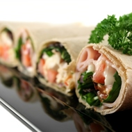 Combine the vinegar and oil, add the spinach and cheese, and mix gently. Place the roasted peppers, spinach mixture, salami, and chopped tomatoes on the pita, and roll it up. Optionally, secure with green lettuce. The rolls are ready.