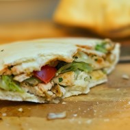Pita with Grilled Salmon, Avocado, and Arugula with Wasabi Sauce