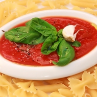Finely chop the onion and minced garlic, sauté in olive oil, add tomatoes and spices.