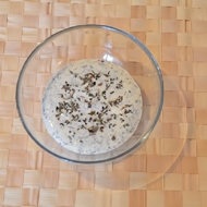 In 1 tablespoon of sunflower oil, add 2 tablespoons of dried basil, 2 tablespoons of white balsamic vinegar, and 2 tablespoons of mayonnaise.