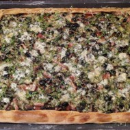 For the first 15 minutes, it is important to watch that the ingredients on the pizza do not burn, which depends on the oven setting chosen. I bake the pizza for 10 minutes on the 'top and bottom heat' setting + 5 minutes on the 'top grill' setting. Blue cheese is a very important ingredient, as without it, the pizza will be too bland and tasteless.
