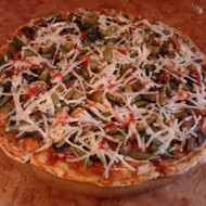 Pizza with Sausage, Green Beans, and Olives