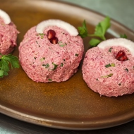 Next, pass the cabbage, beetroot, onion, and walnuts through a meat grinder.