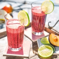 Pour the finished smoothie into glasses and garnish with a slice of lemon.