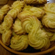 In a mixer, combine the softened butter, sugar, vanilla, add the eggs, and gradually mix in the flour and polenta mixture (if too thick, add a couple of tablespoons of water). The dough should be firm yet pliable enough to be piped from a pastry bag.