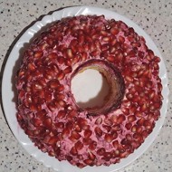 Peel the pomegranate. Arrange the pomegranate seeds on top. Carefully remove the glass.