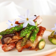 Pork, Asparagus, and Mushroom Salad with Wine Sauce