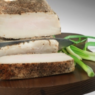 Rub a piece of lard with a mixture of peppers (black, cayenne, white, allspice, pink). You can find this mixture in stores, or you can make it at home, which is even better if the pepper is freshly ground.