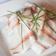 Layer the ingredients in an enameled pot, grind together salt, garlic, and pepper, and sprinkle this mixture over the lard. Place bay leaves between the layers.