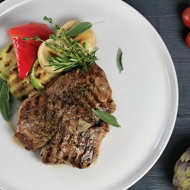 Mix the oil with the vinegar. Place the meat in a pot or container, sprinkle with garlic and thyme leaves, drizzle with the oil and vinegar mixture, mix well, cover, and let sit for a few hours.