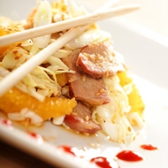Drain the raisins and add them to the cabbage along with the sliced meat. Dress with mayonnaise.