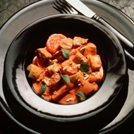 Cut the pork into cubes (2.5-3 cm) and season with salt and pepper.