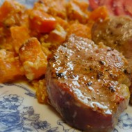 This recipe includes a minimal number of ingredients, making it as simple as possible. Instead of sweet potato, you can use regular potatoes, but it won't be as impressive, as sweet potato gives the meat a completely different flavor, enhancing it with its sweetness. And while the meat marinates a bit in spices and salt, you will have time to prepare the side dish, which is very convenient. Enjoy your meal.