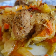 Pork with Cabbage, Carrots, and Tomatoes in the Oven