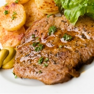 Brush the pieces of pork with the mustard mixture on both sides. Place them on a baking sheet or in an ovenproof skillet. Cover with parchment paper. Transfer to the oven.
