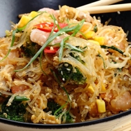 Place the rice noodles in a pot filled with boiling water to cook. Cook until done, then rinse with cold water.
