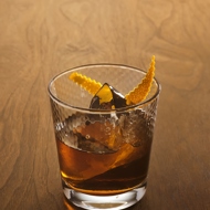 Strain into a glass filled with ice cubes. Garnish with orange zest.