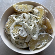 In a bowl, combine sour cream, garlic, dill, and salt.