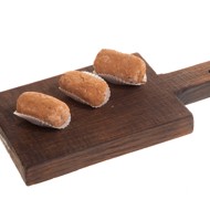 The Potato Cake was originally conceived as a sweet imitation of the root vegetable of the same name. The cakes are shaped from a light sponge cake mixture and then rolled in cocoa powder to achieve the effect of a thin skin. For a complete resemblance, add eyes made of cream—such as buttercream.