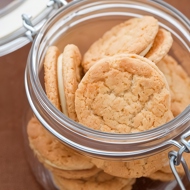 Cut out circles from the dough, sprinkle them with sugar, and bake in the oven at medium heat. Pair the finished cookies together using lemon cream.