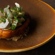 Potato Crumble with Pickled Mushrooms, Marinated Cucumbers, and Unrefined Oil