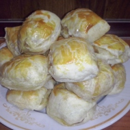 Roll out the pastry into a long sheet. Place the potato filling on the pastry. Roll the pastry into a log. Using the blunt side of a knife, divide the log into pieces without cutting all the way through, just pressing down. Pinch the edges of the pastry together to form a ball.