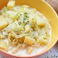 Clean the leeks, rinse, chop, place in boiling salted water, and boil for 5–6 minutes.