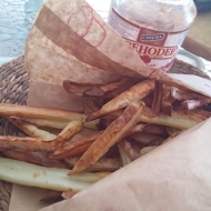 Cut the potatoes into strips, like for chips, and dry them with a paper towel.