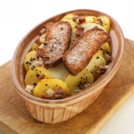 Pour in the broth or water, bring to a boil for 5 minutes, then add well-peeled, diced raw potatoes to the pot.