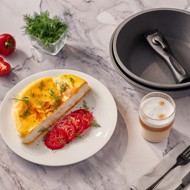 Serve with a latte made in a Polaris PACM 2080AC IQ Home coffee machine.