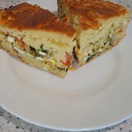Pouring Pie with Kefir, Eggs, Cheese, and Greens