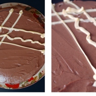 Make the cream. Whip the butter well, then gradually add the condensed milk and cocoa powder. Next, simply spread the cream on all sides of the layers.