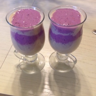 Divide the mixture into 2 parts - add peanut butter to one part and berries (any kind, I used blackberries) to the other, blend each mixture separately until smooth.
