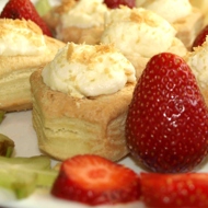 Whip the mascarpone cheese with the cream and powdered sugar.