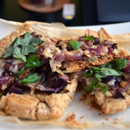Cut the finished pie into portioned pieces and serve as an appetizer or pastry with tea. It is great because it tastes amazing hot, warm, and even cold! I decided to decorate the pie with basil leaves since it was summer.
