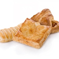 Prepare the puff pastry, rolling it out into a flat rectangular strip about 1/2 cm thick; use a cutter or glass to cut out circles along the entire strip, lightly moisten the circles with water, place a ball of filling in the center of each, and then cover the filling with another circle.