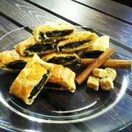 Roll out the prepared puff pastry. Spread the filling on the pastry and roll it up into a log.