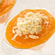 Add sugar, lemon juice, egg white to the pumpkin-apple puree and whip into a fluffy mass. While continuously and quickly stirring, slowly pour in the hot dissolved gelatin, distribute the mixture into small bowls, and place in the refrigerator.