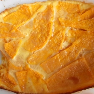 Layer one layer of pumpkin in the dish, drizzle with a third of the sauce. Repeat with two more layers. Top with the remaining cheese.