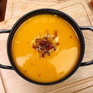 Skim the top fatty layer off the coconut milk and set it aside. In a large pot, mix the remaining coconut milk with 300 ml of water. Stir in the blender mixture, add fish sauce, sugar, and pepper. Bring to a boil, reduce heat, and stir with a wooden spoon until the mixture is smooth. Add the pumpkin and simmer for about 20 minutes until the pumpkin is soft.
