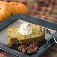 Add the pumpkin puree, flour, nuts, baking soda, baking powder, spices, and salt. Mix well.