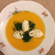 Add the sautéed vegetables to the pumpkin, bring back to a boil, season with salt, pepper, add chili to taste, and saffron. Blend into a puree with a blender.