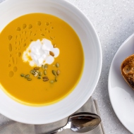 Pumpkin Cream Soup with Honey, Ginger, and Coconut