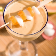 In a blender, combine the frozen yogurt, milk, pumpkin puree, vanilla, cinnamon, ginger, cloves, nutmeg, and brown sugar. Blend until smooth and pour into large glasses.